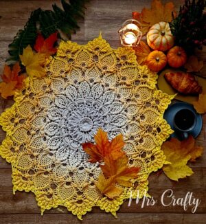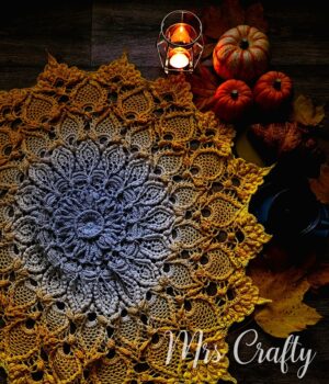This exquisite piece is perfect for adding a touch of elegance and warmth to any space. The detailed crochet work and vibrant colors make it a standout decorative item, ideal for hanging on walls or using as a table centerpiece.